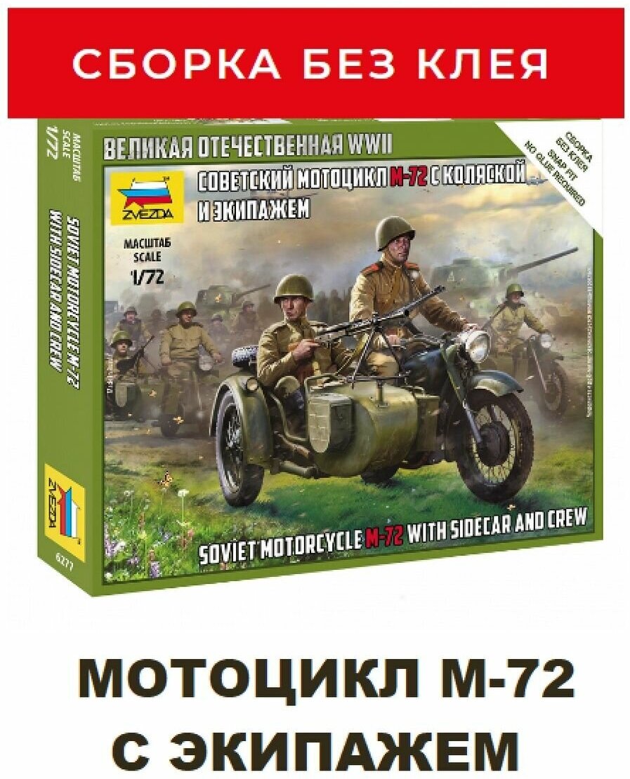Сборная модель «Советский мотоцикл М-72 с коляской и экипажем»,Звезда, 1:72, (6277)