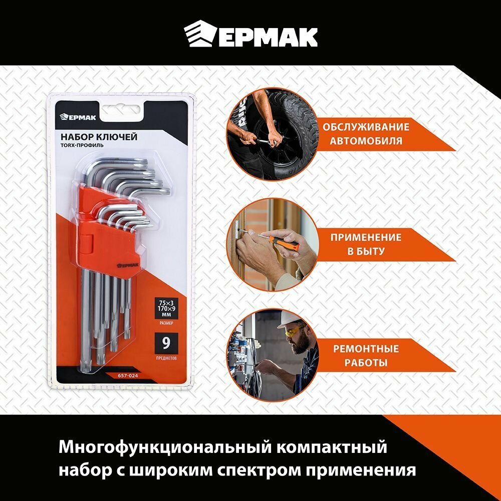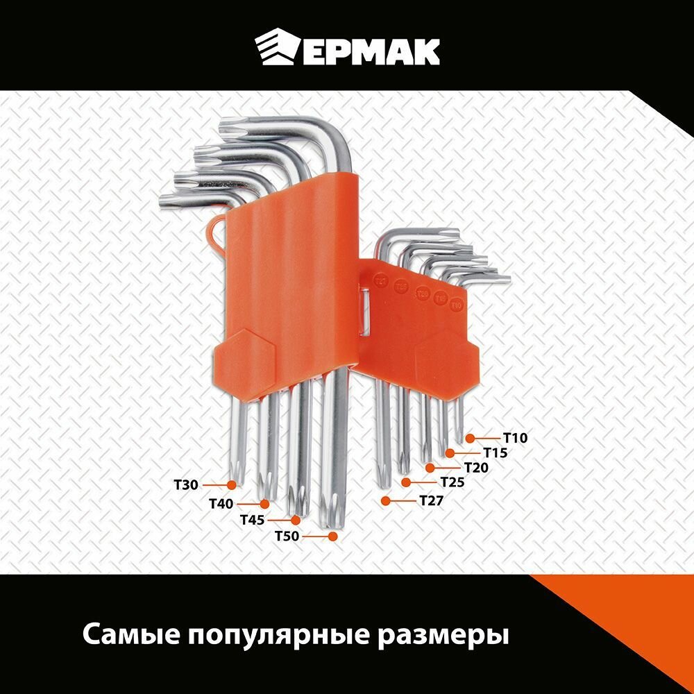 Набор ключей TORX-профиль 9пр. (75х3мм-170х9мм) ермак информация: