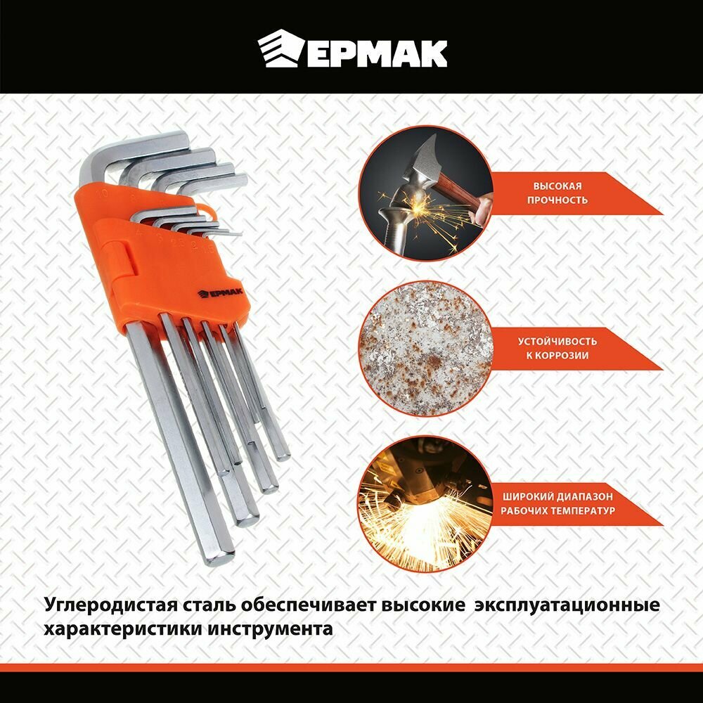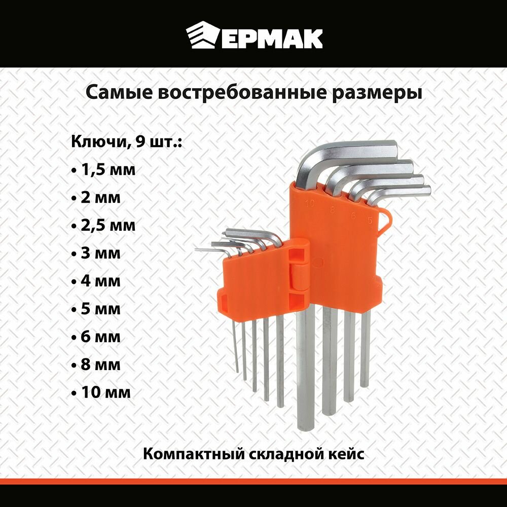 Набор ключей - шестигранников 1,5-10мм, 9шт. Ермак информация: