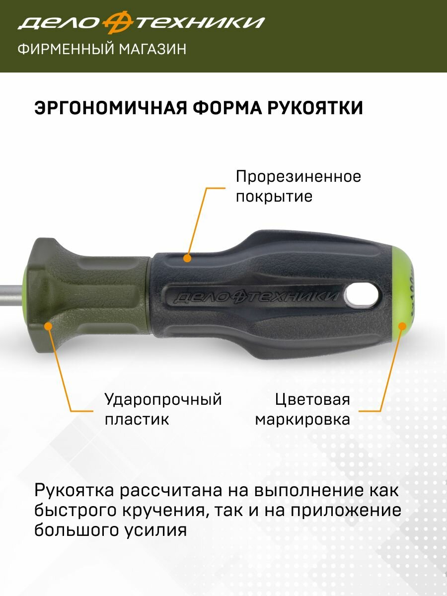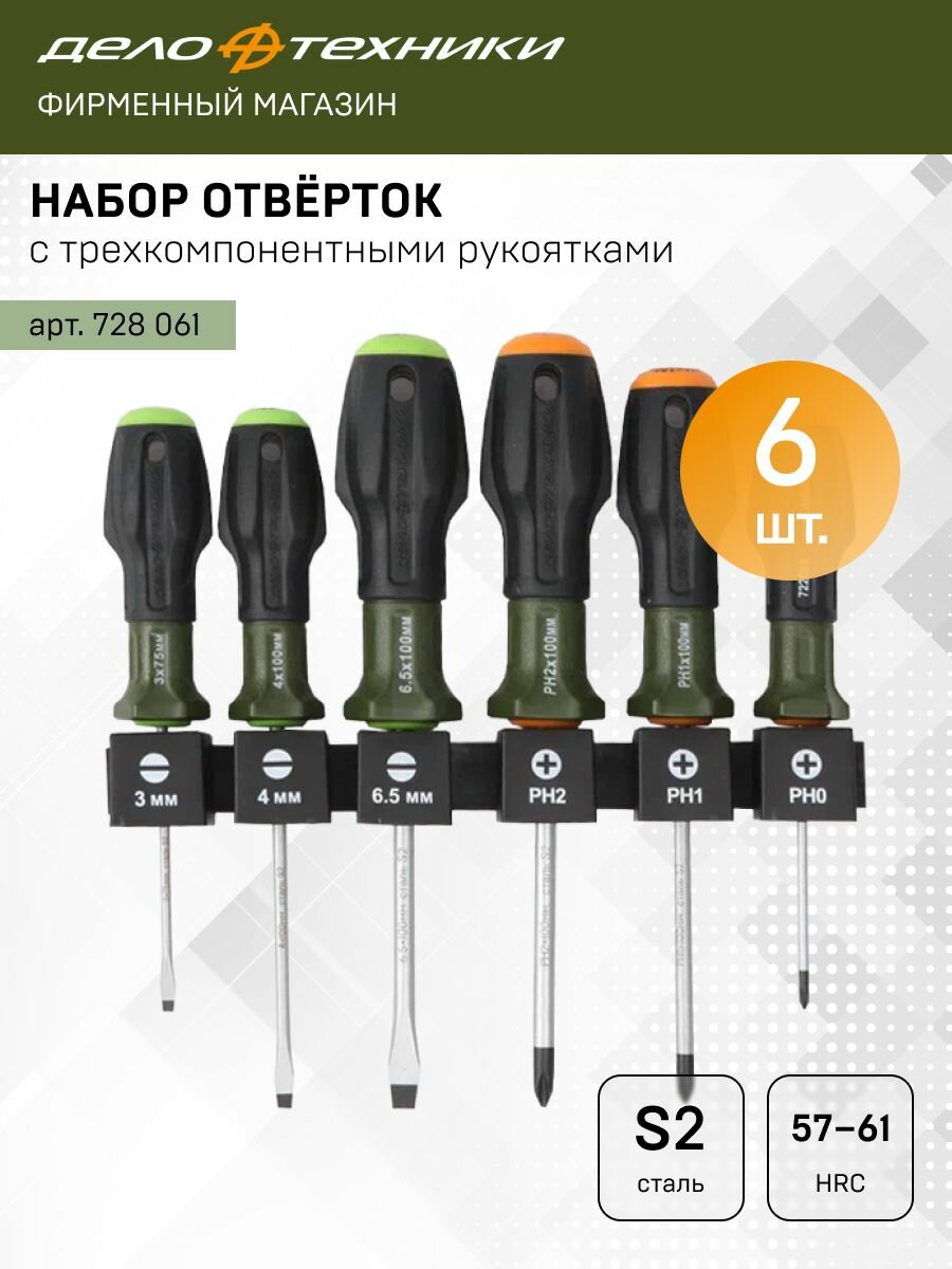 Набор отвёрток c трехкомпонентными рукоятками SL, PH, 6 штук, Дело Техники, 728061 информация: