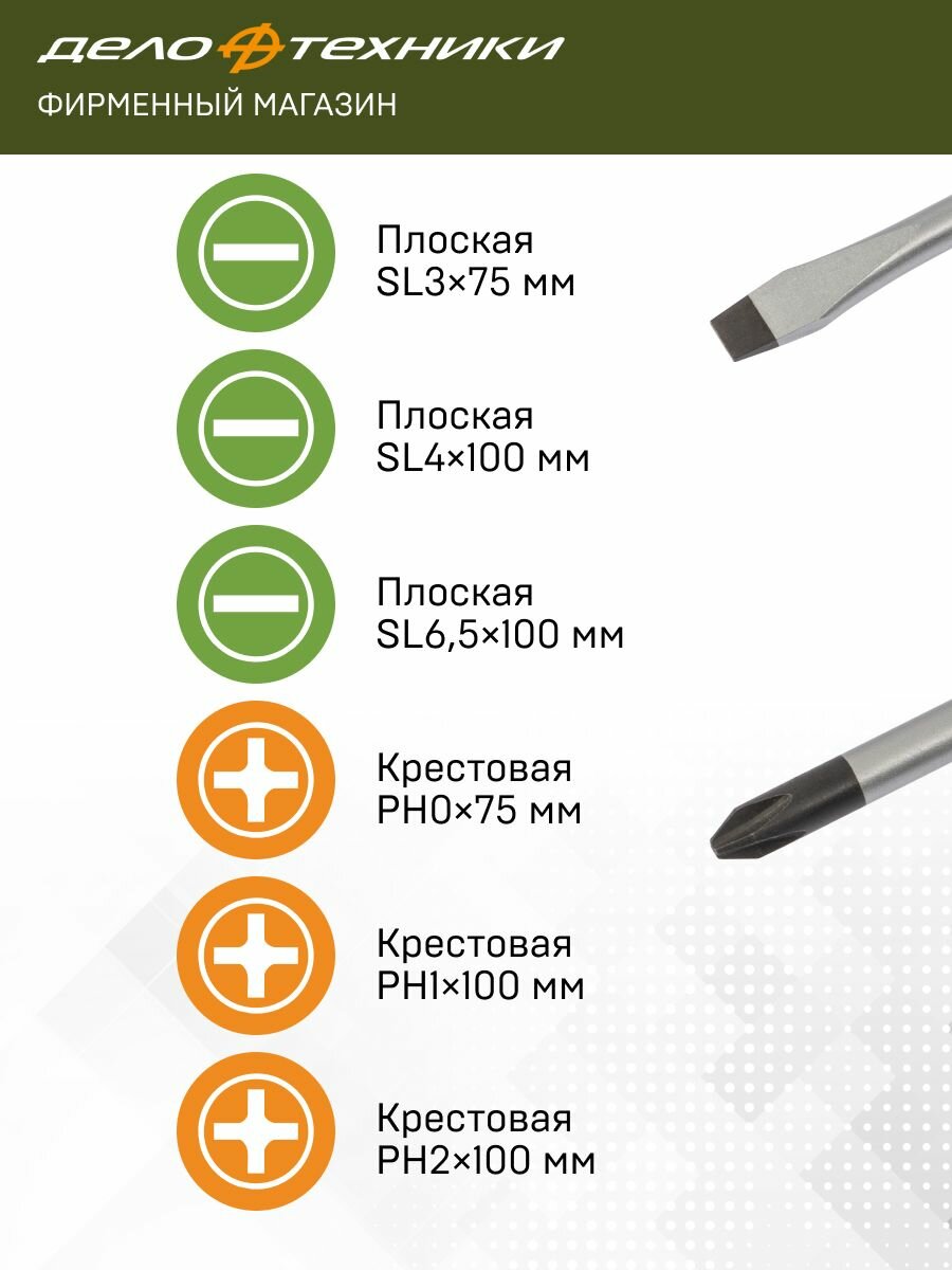 10 цен на Набор отвёрток c трехкомпонентными рукоятками SL, PH, 6 штук, Дело Техники, 728061