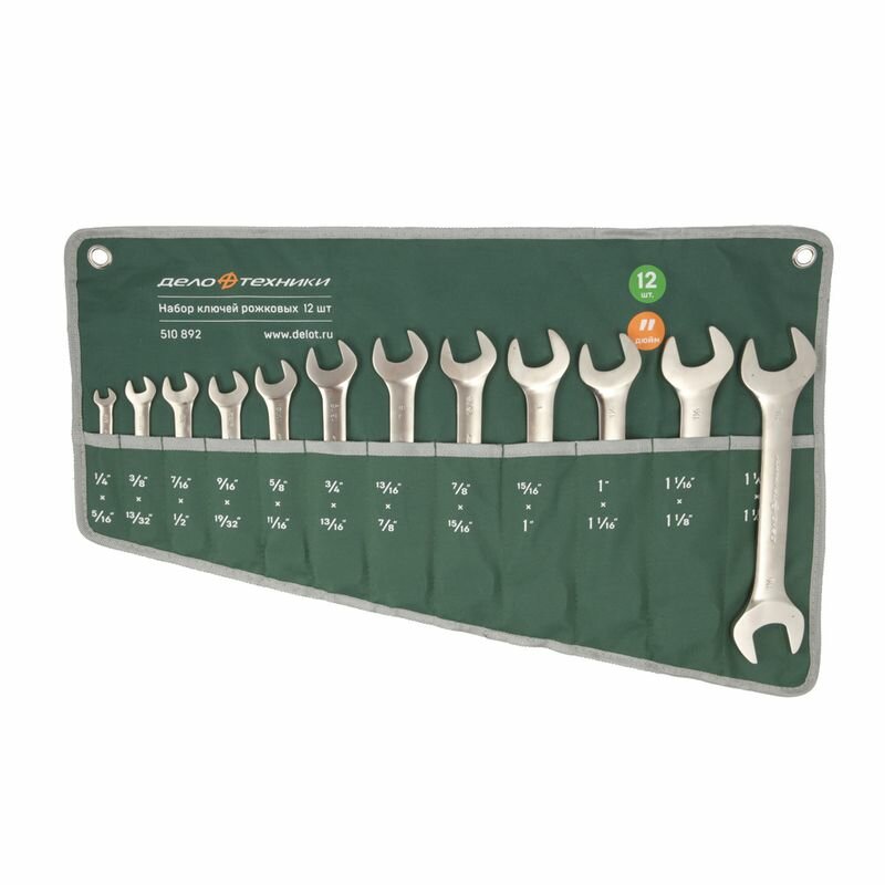 Набор рожковых дюймовых ключей 12 шт Дело Техники 510892 .