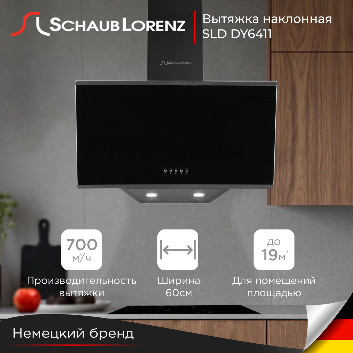 Вытяжка для кухни наклонная Schaub Lorenz SLD DY5107, 50 см, черное стекло