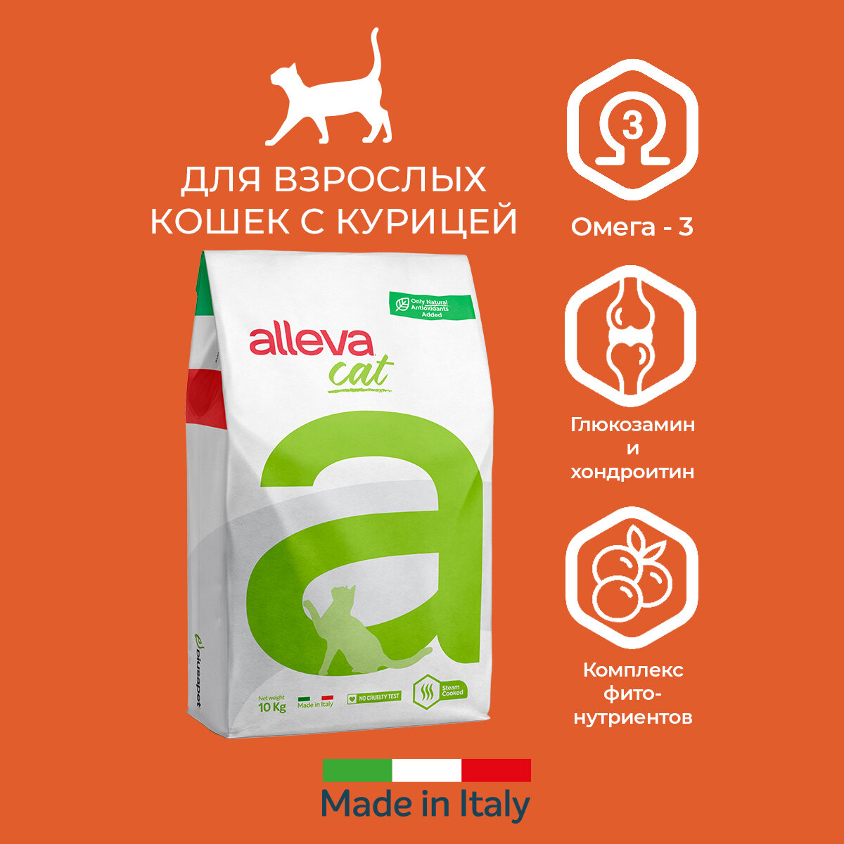 ALLEVA Полнорационный корм для взрослых кошек с курицей. 0,4 кг. х 4 шт. 3 115 ₽
