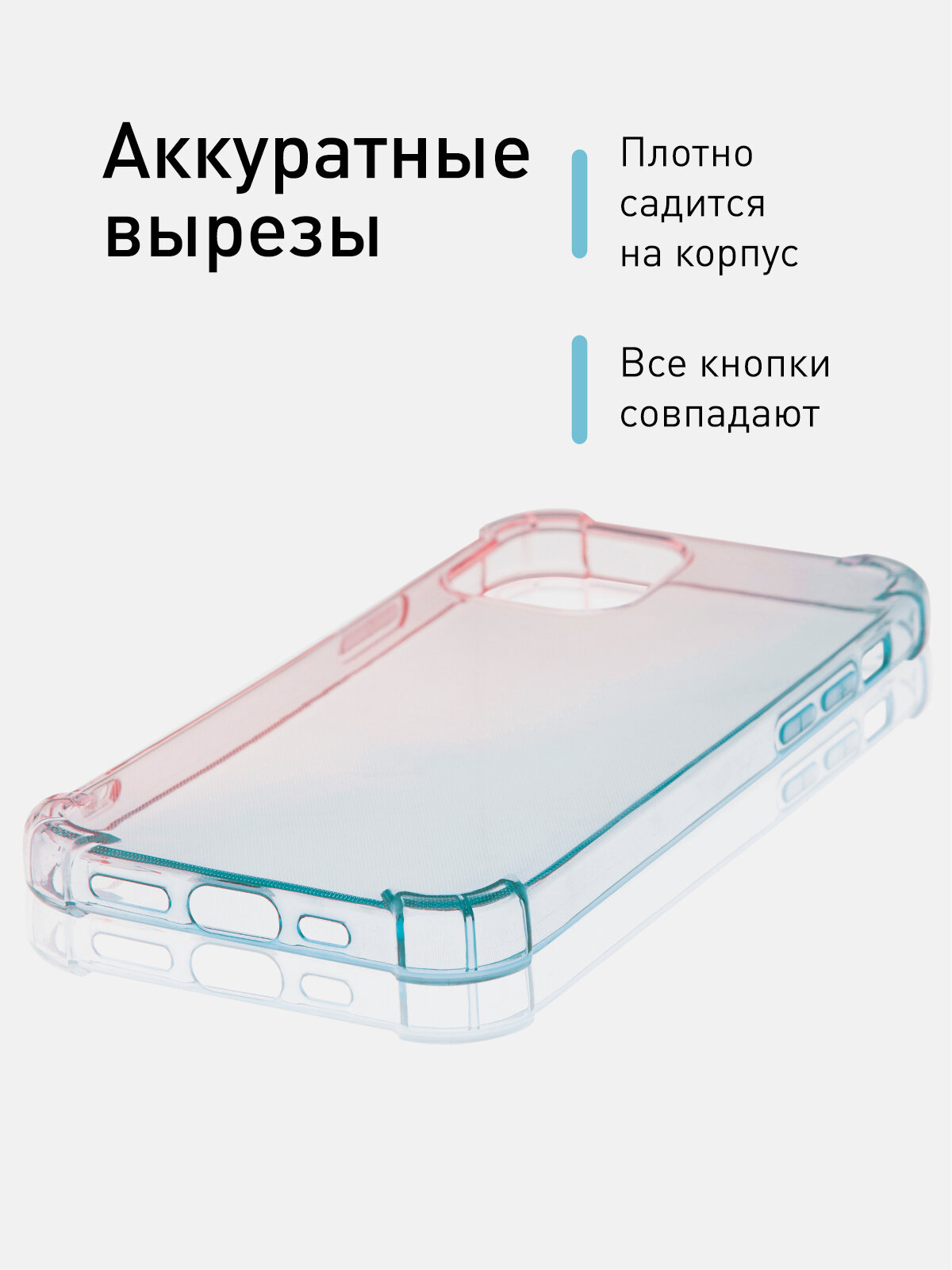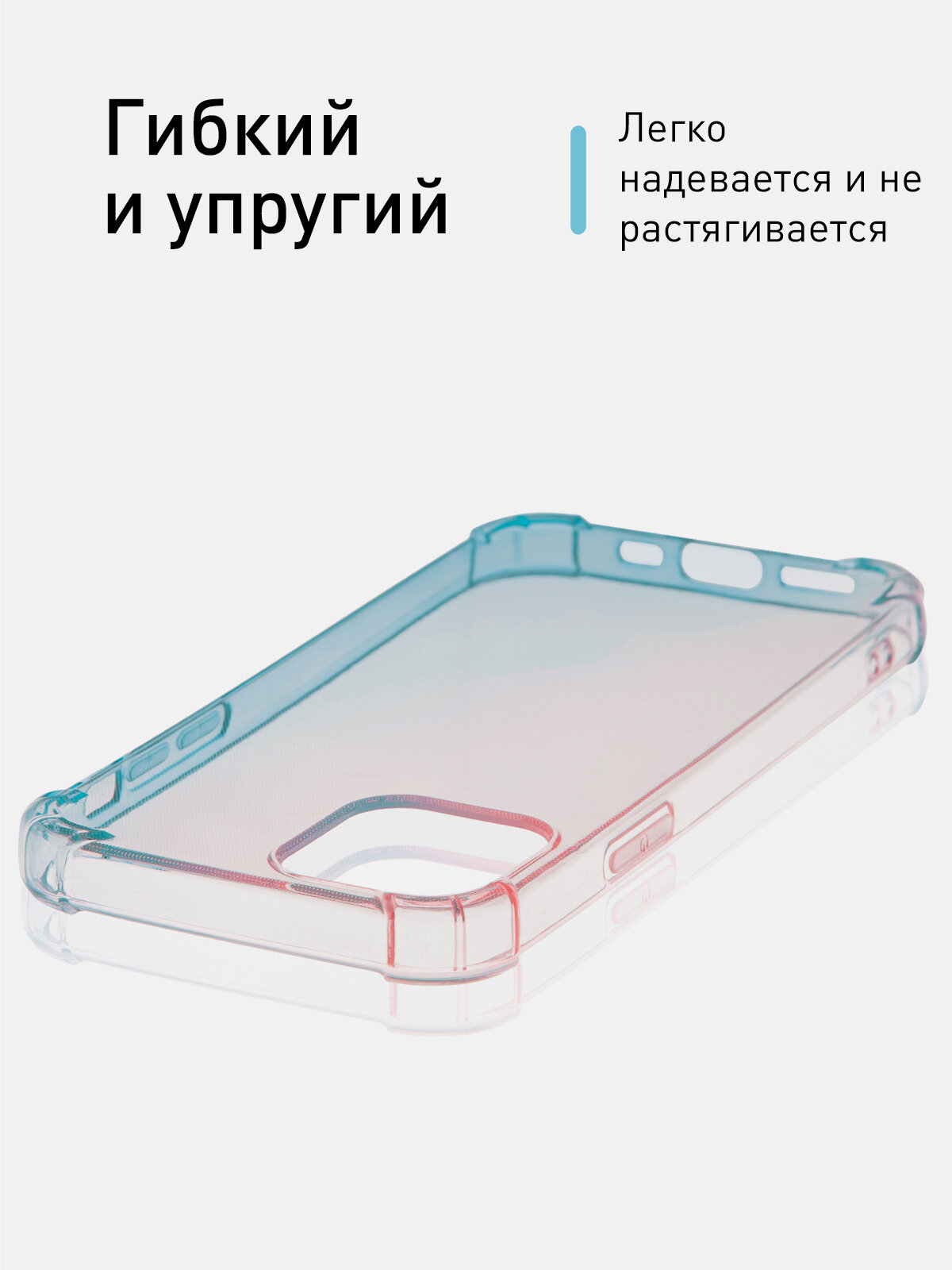 Отзывы на Противоударный силиконовый чехол Rosco на Apple iPhone 12 и 12 Pro (Айфон 12 и 12 Про), прозрачный розово-голубой