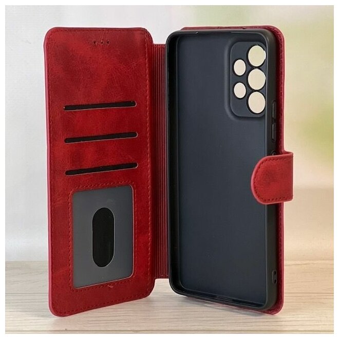 Отзывы на Чехол книжка для Samsung Galaxy A33 кожаный красный с магнитной визитницей / отделением для карт