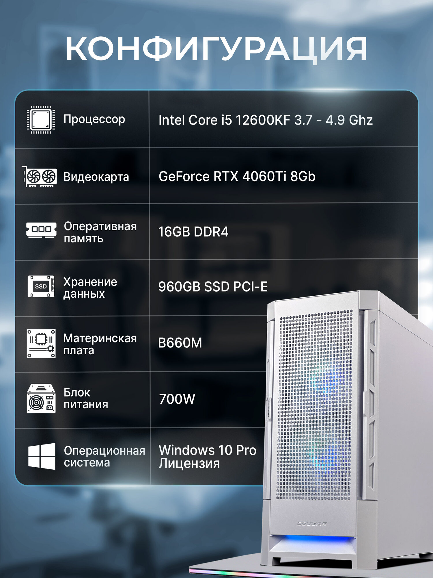 Мощный компьютер для игр/стрима/монтажа i5 12400F / 16Gb DDR4 / RTX 3060 12Gb GDDR6 / SSD M2 512Gb / 600W / Windows 10 Pro
