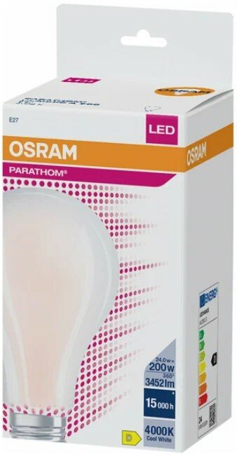 Лампа Светодиодная OSRAM 24W=200W 220V E27 Груша матовая A 3452Лм Филаментная 4000K Дневной белый свет, уп. 1шт