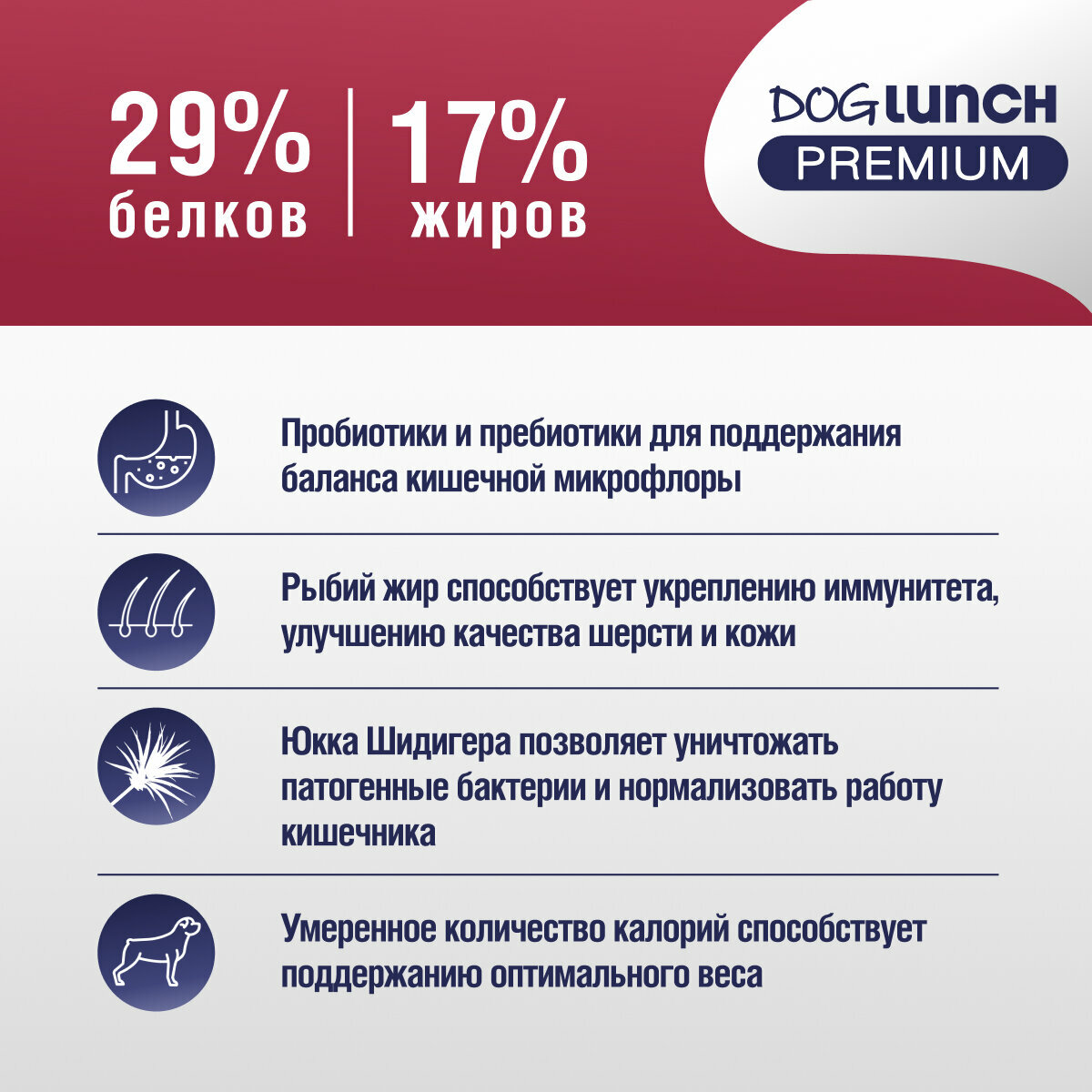 Dog Lunch Premium Корм сухой для собак средних и крупных пород с Говядиной 15кг информация: