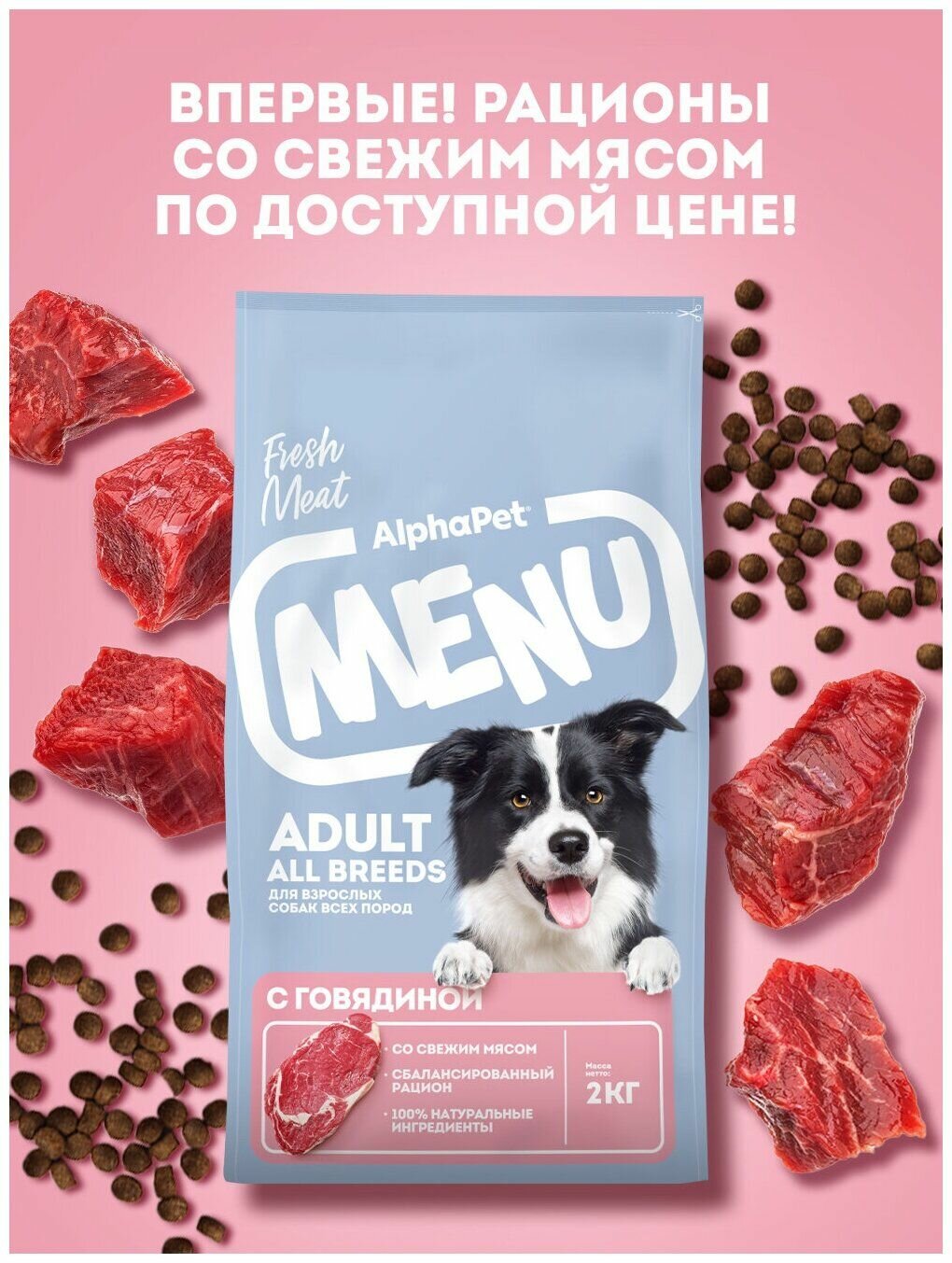 Корм AlphaPet Menu для собак, c говядиной, 2 кг