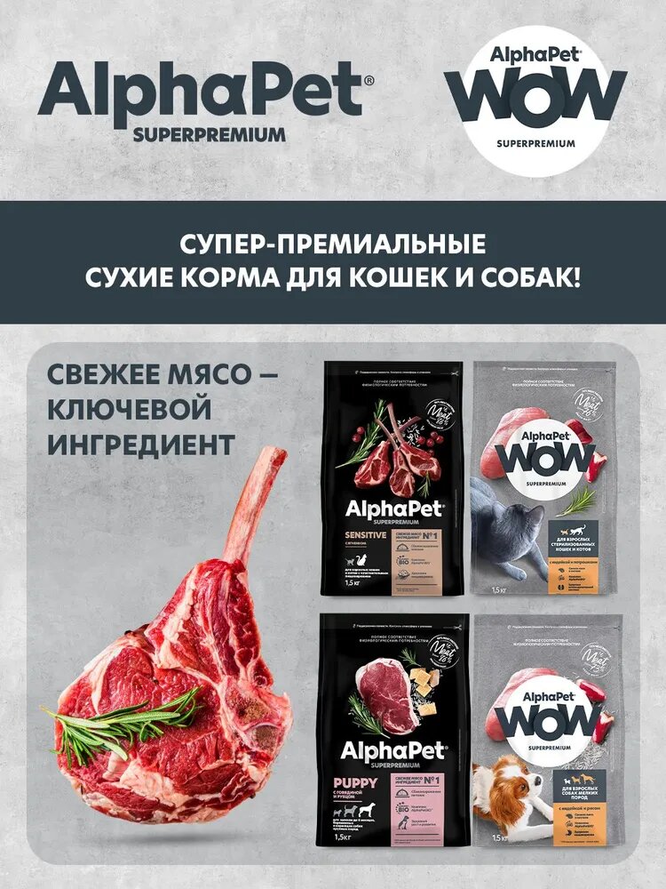 Сухой корм AlphaPet WOW Superpremium для собак средних пород с чувствительным пищеварением, ягнёнок и бурый рис 2 кг 1 500 ₽