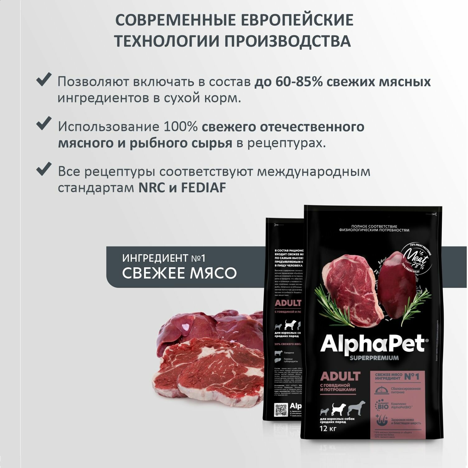 10 цен на Сухой корм AlphaPet Superpremium для взрослых собак средних пород, с говядиной и потрошками, 12 кг