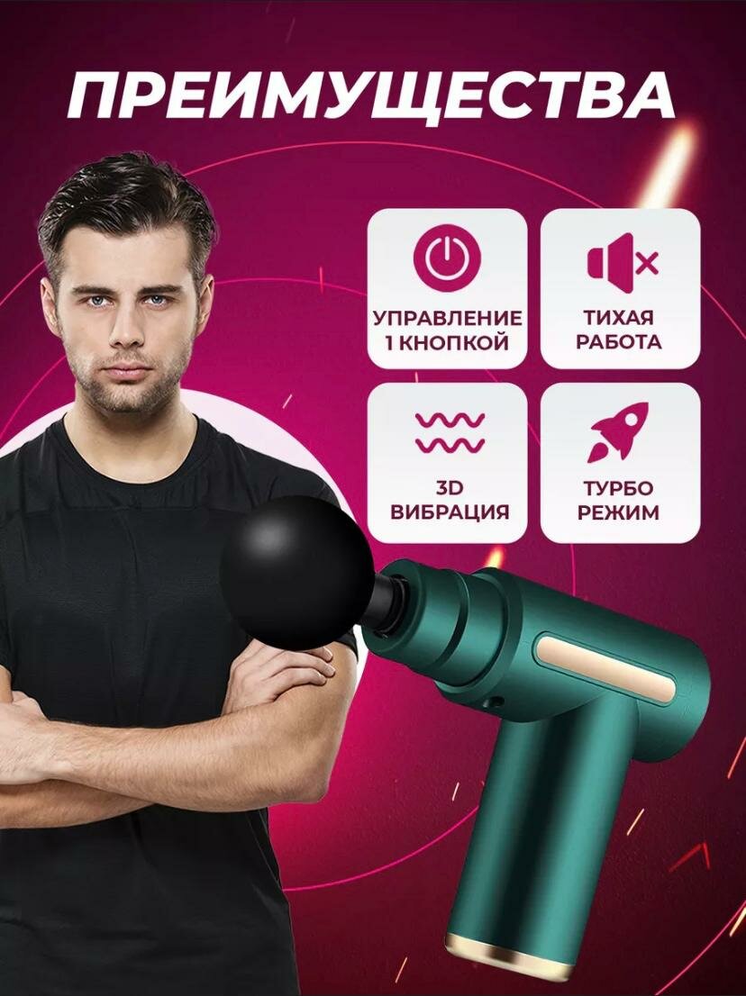 Массажер/массажер для тела/массажер пистолет /массажер электрический/массажер перкуссионный/массажер ударный, цвет зеленый