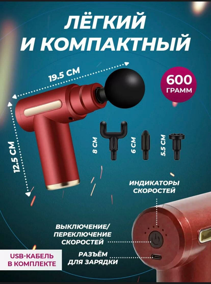Массажер/массажер для тела/массажер пистолет /массажер электрический/массажер перкуссионный/массажер ударный, цвет красный