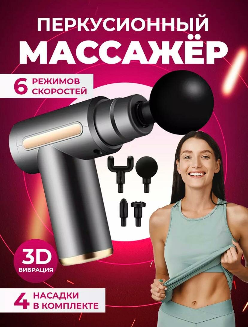 Массажер/массажер для тела/массажер пистолет /массажер электрический/массажер перкуссионный/массажер ударный, цвет черный