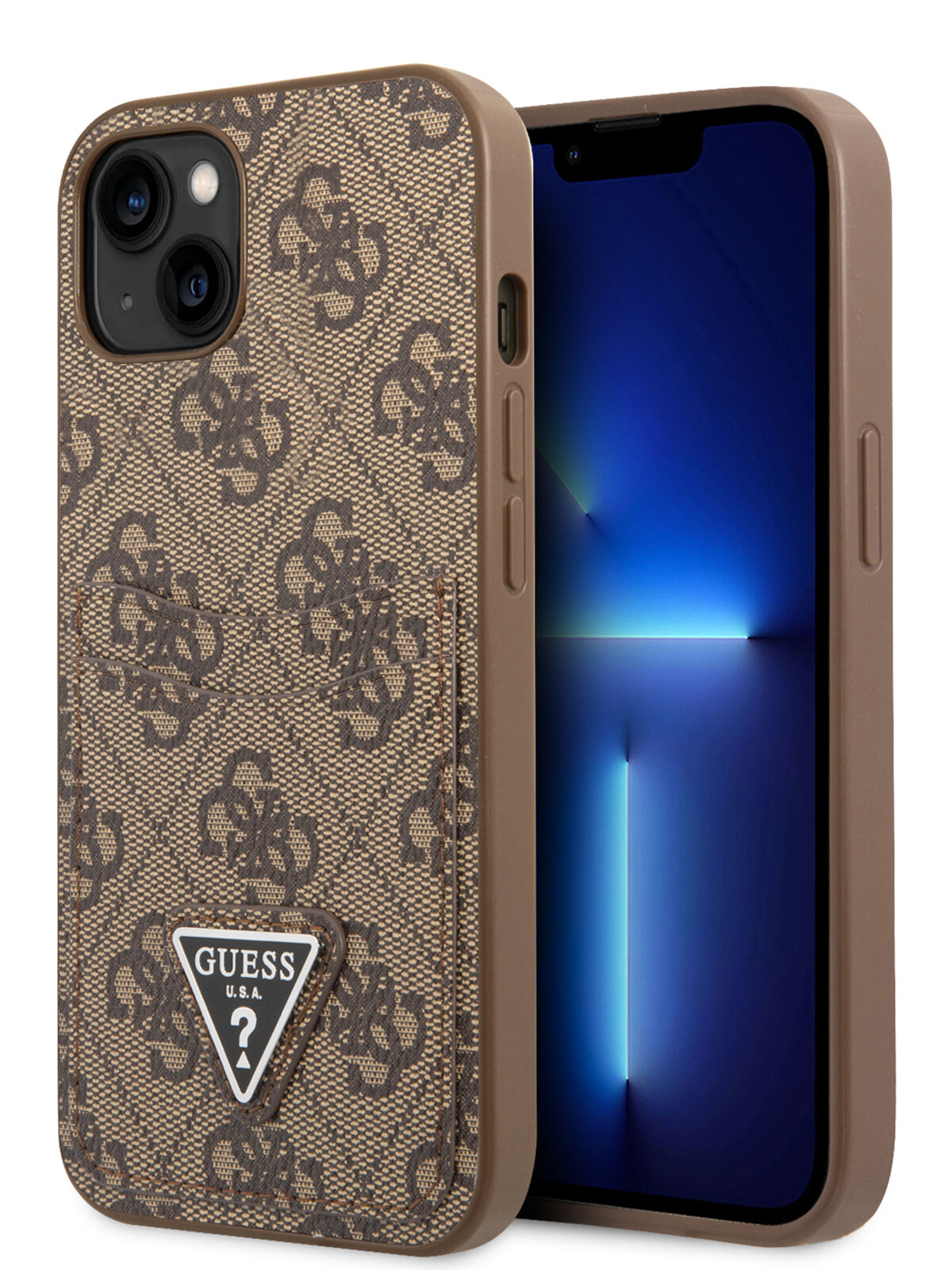 Чехол CG Mobile Guess PU 4G Double cardslot w Metal triangle logo Hard для iPhone 14, цвет Коричневый (GUHCP14SP4TPW)