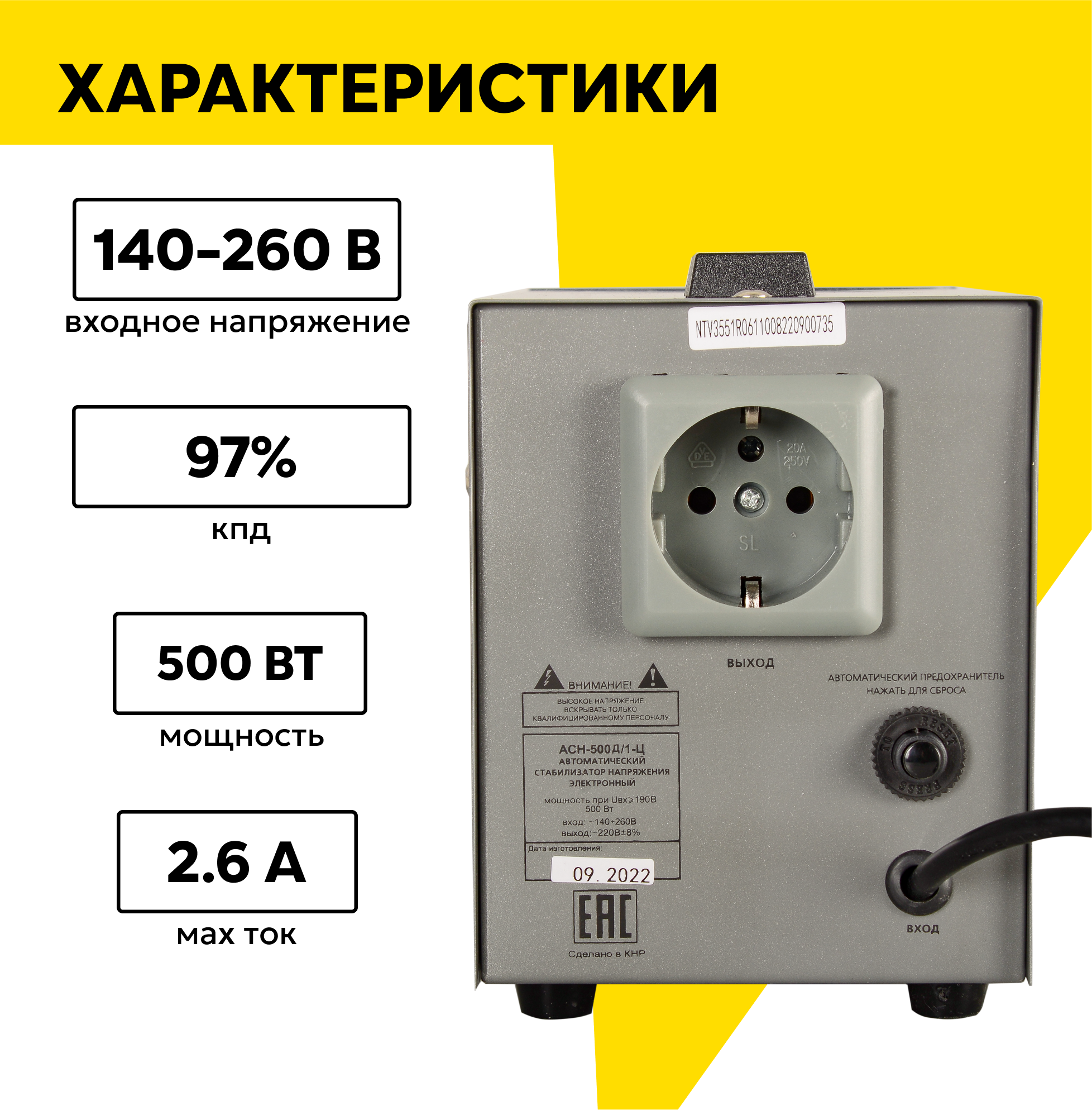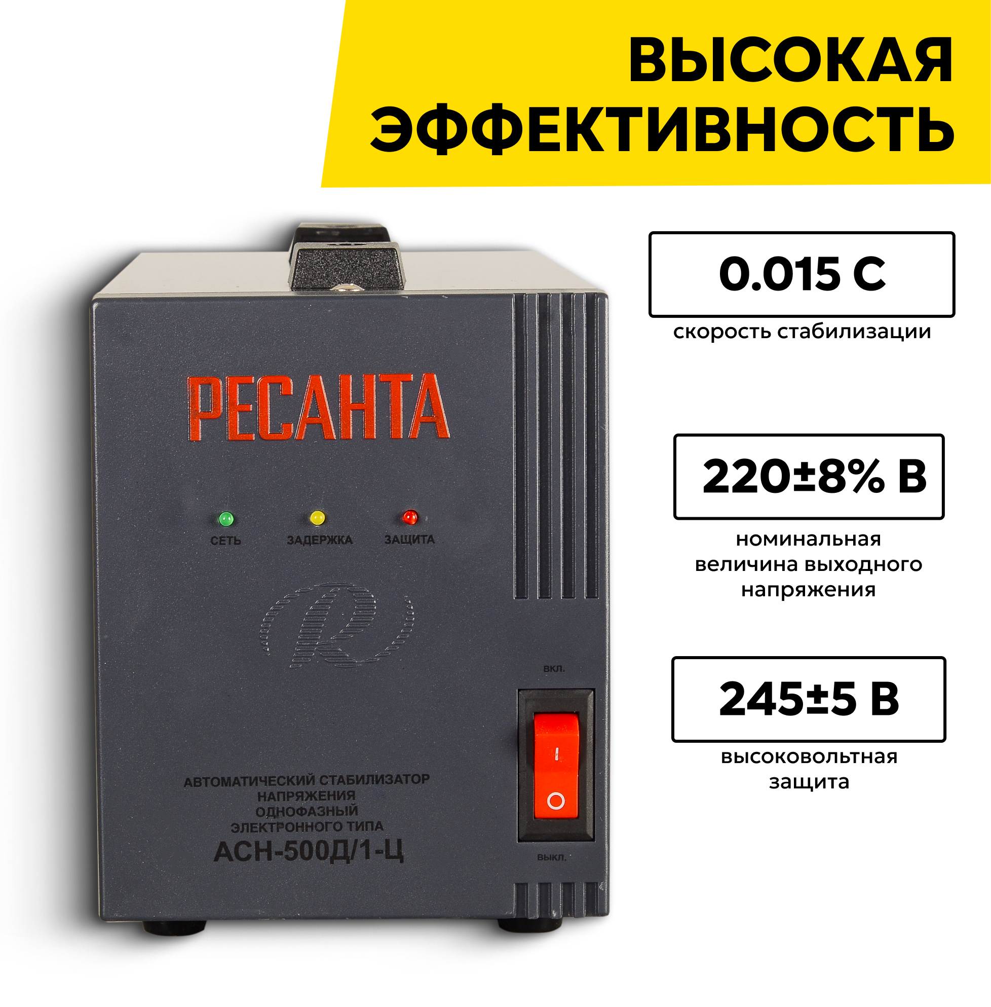 Стабилизатор напряжения однофазный Ресанта АСН-500Д/1-Ц, 0.5 кВт информация: