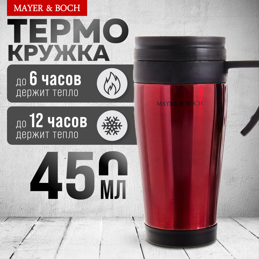 Термокружка крышка MAYER & BOCH 25877, 0.45 л, красный/черный