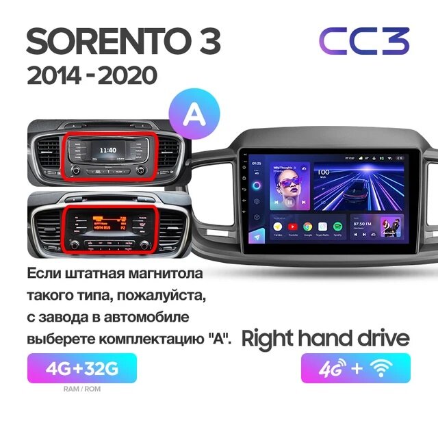 Магнитола Teyes CC3 4/32 Kia Sorento 3 2014 - 2017 “A” информация:
