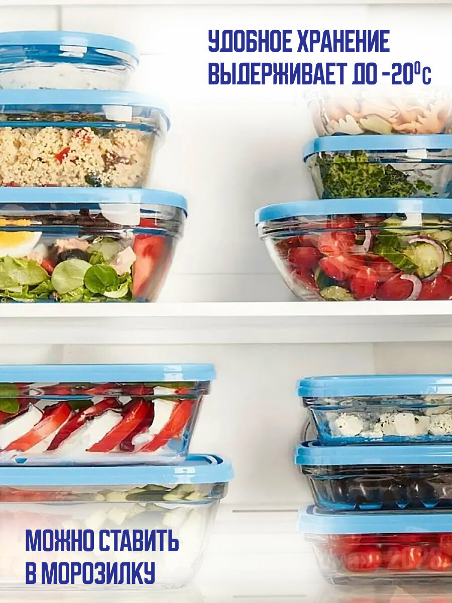 10 цен на Контейнер стеклянный для хранения, 390 мл, FRESHBOX, прямоугольный, прозрачный с голубой крышкой