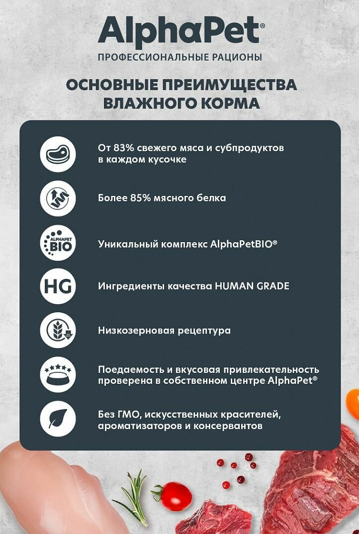 Влажный полнорационный корм AlphaPet Superpremium для кошек с говядиной и малиной в соусе 80г 67 ₽