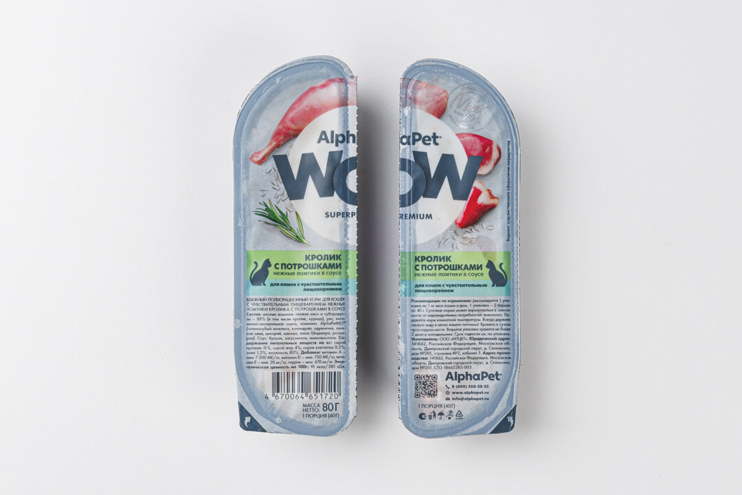 Отзывы на AlphaPet WOW Superpremium влажный корм для кошек с чувствительным пищеварением кролик с потрошками в соусе, в ламистерах - 80 г
