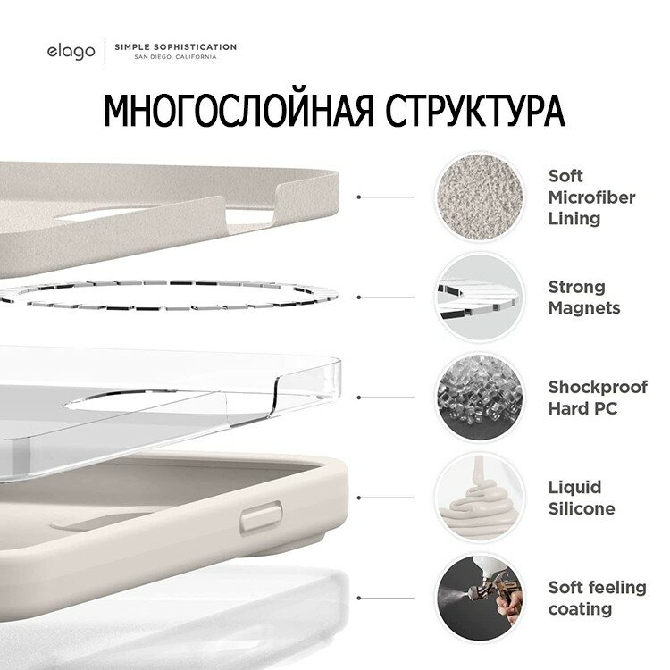 Elago для iPhone 14 чехол MagSafe Soft silicone case Stone информация: