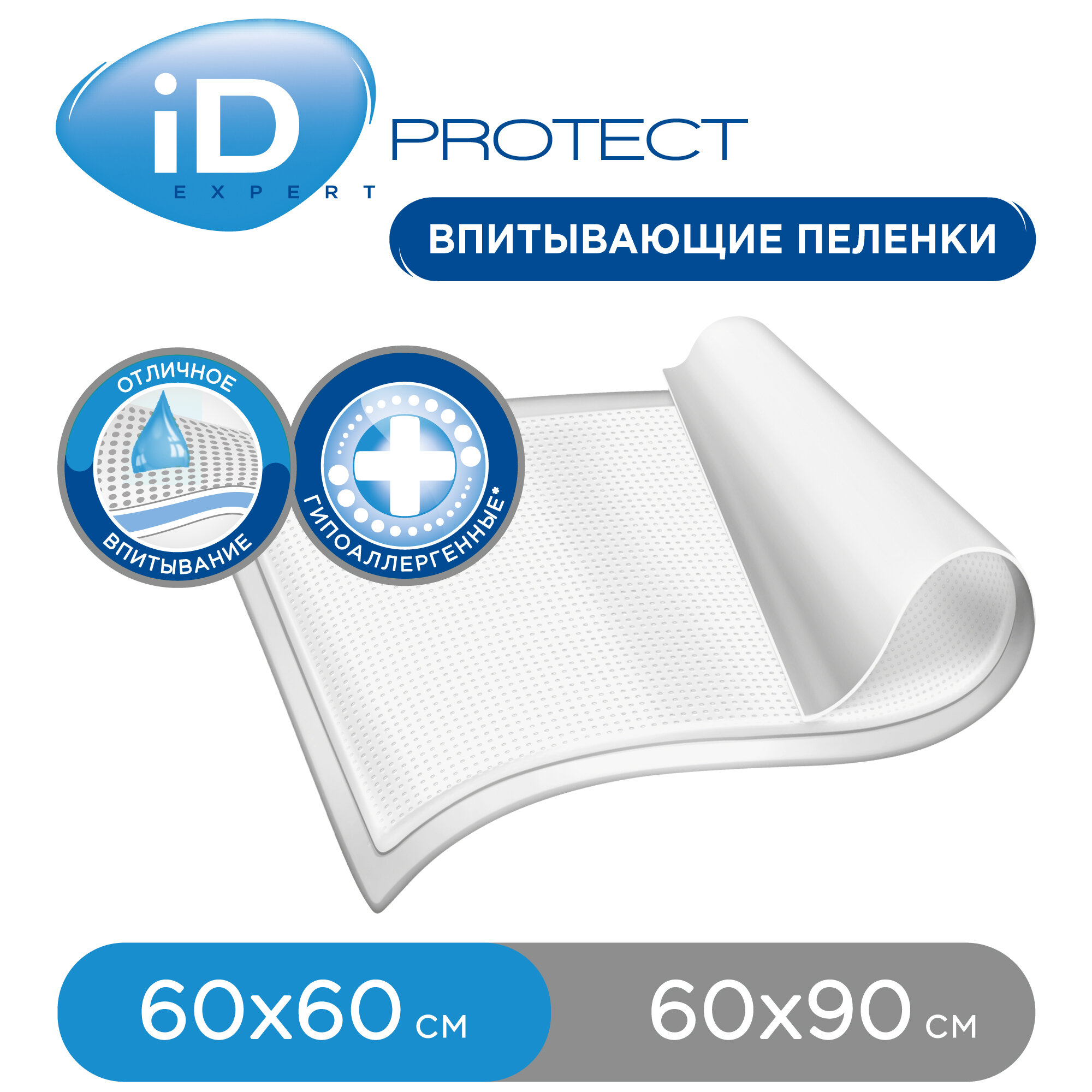 Одноразовые впитывающие пеленки ID Protect Expert 60x90, 30 шт, 6 уп медицинские 3 210 ₽