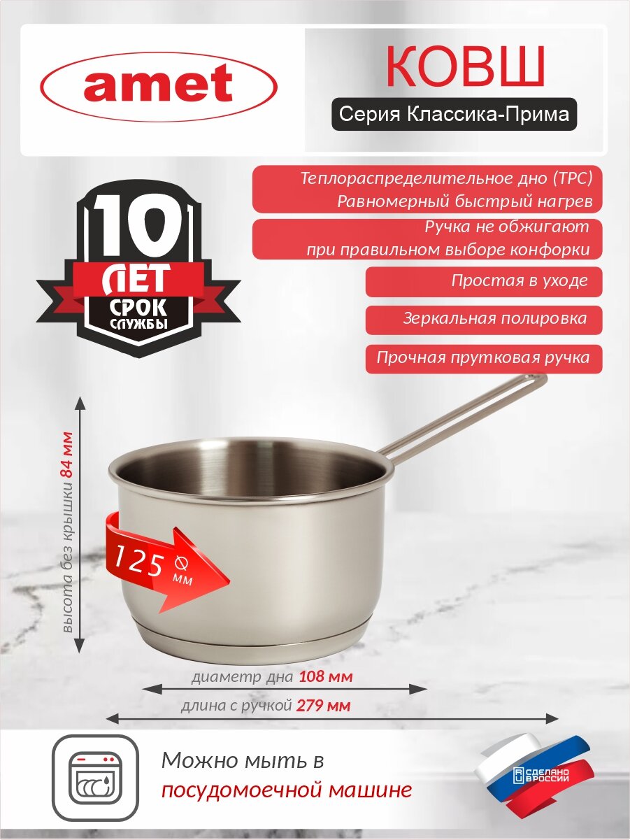 Ковш Амет 1с2563 объем 0,8л, D12см, из нержавеющей стали без крышки