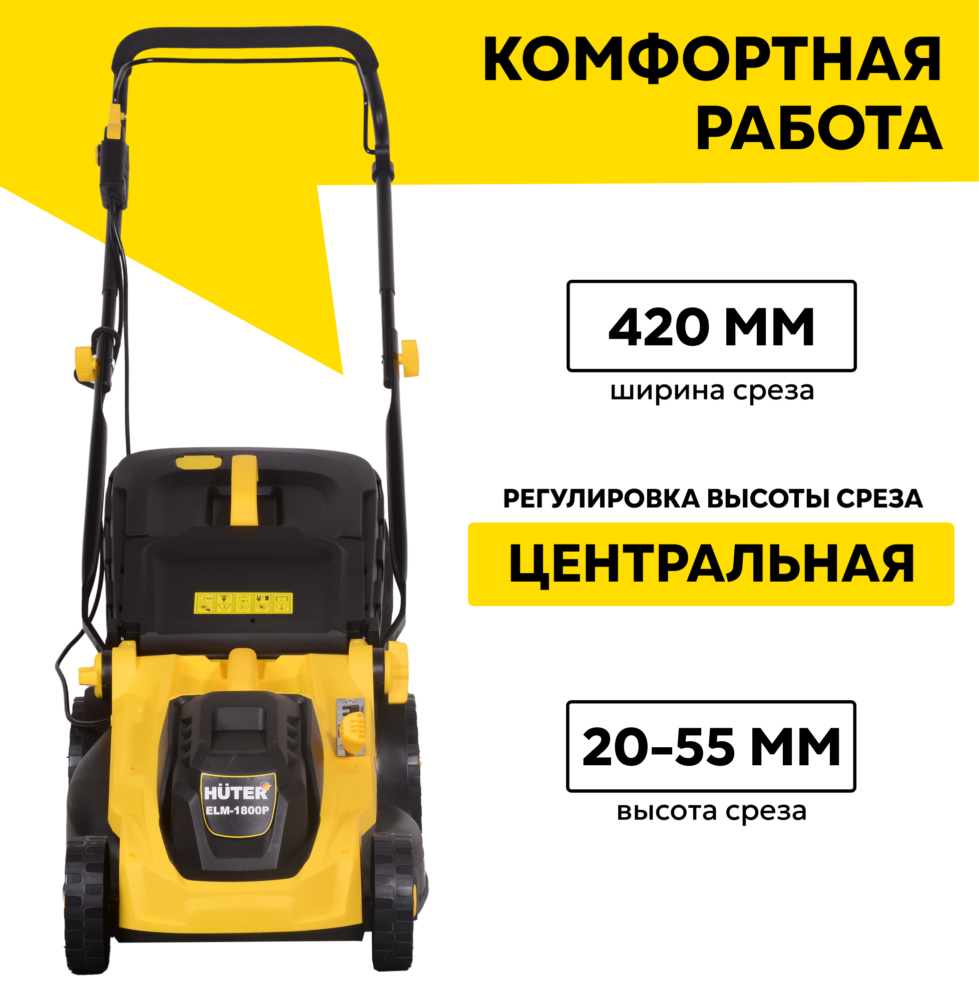 Электрическая газонокосилка Huter ELM-1800P, 1800 Вт, 42 см