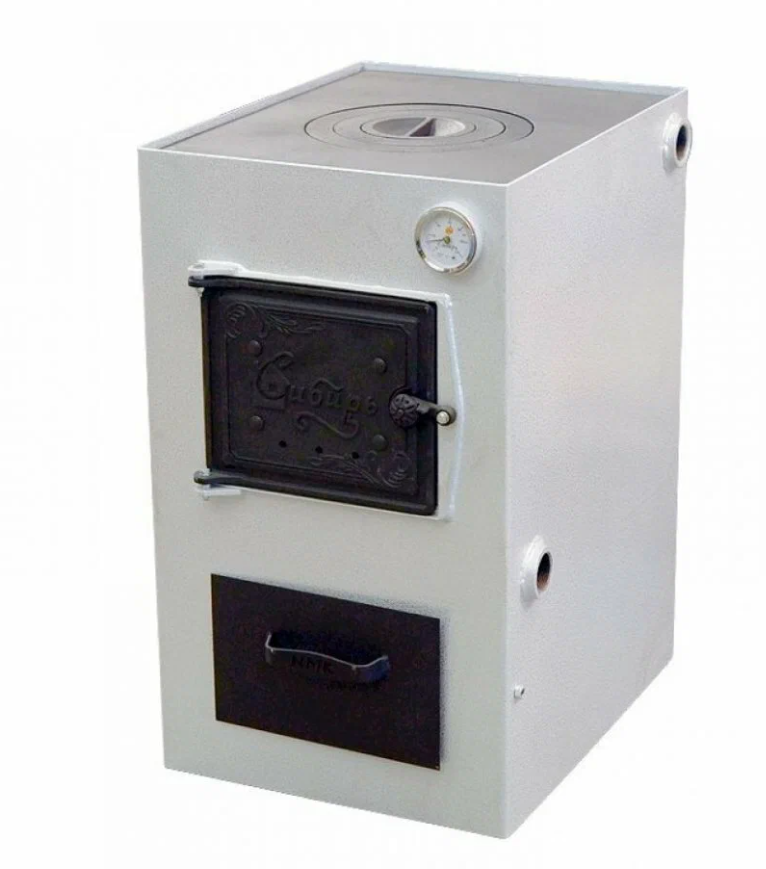 Котёл напольный твердотопливный сибирь КВО 20 (универсальный) белый С комфоркой