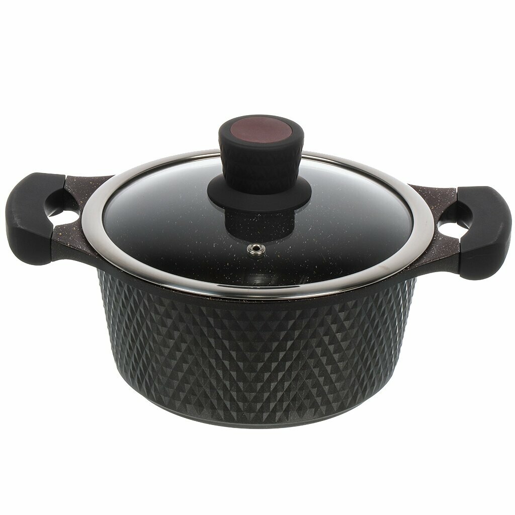 10 цен на Кастрюля алюминий, антипригарное покрытие, 2.5 л, с крышкой, MercuryHaus, Гранит, 1821-MC, черная, индукция