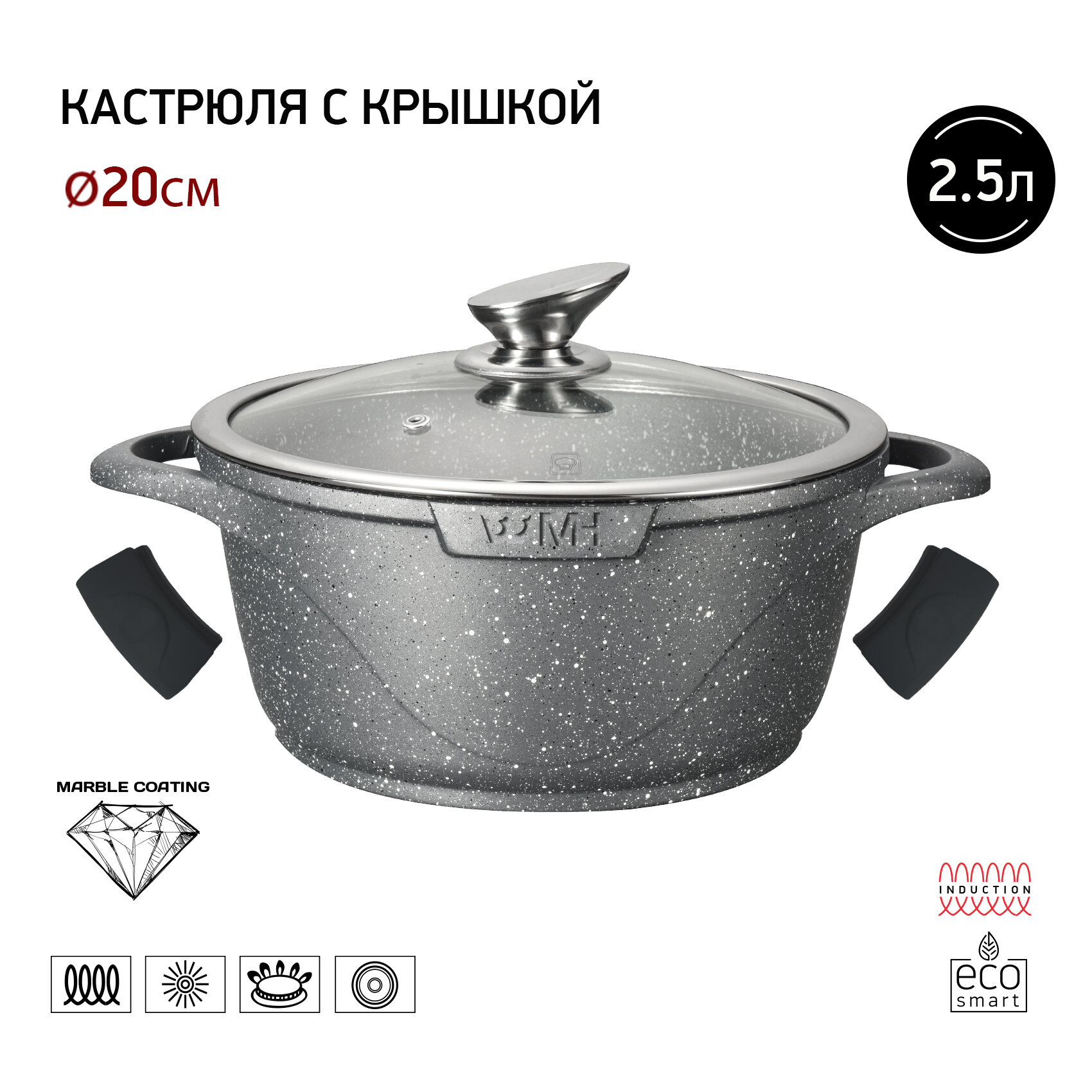 10 цен на Кастрюля с крышкой Mercury Haus MC-1818 с мраморным антипригарным покрытием, 2,5л