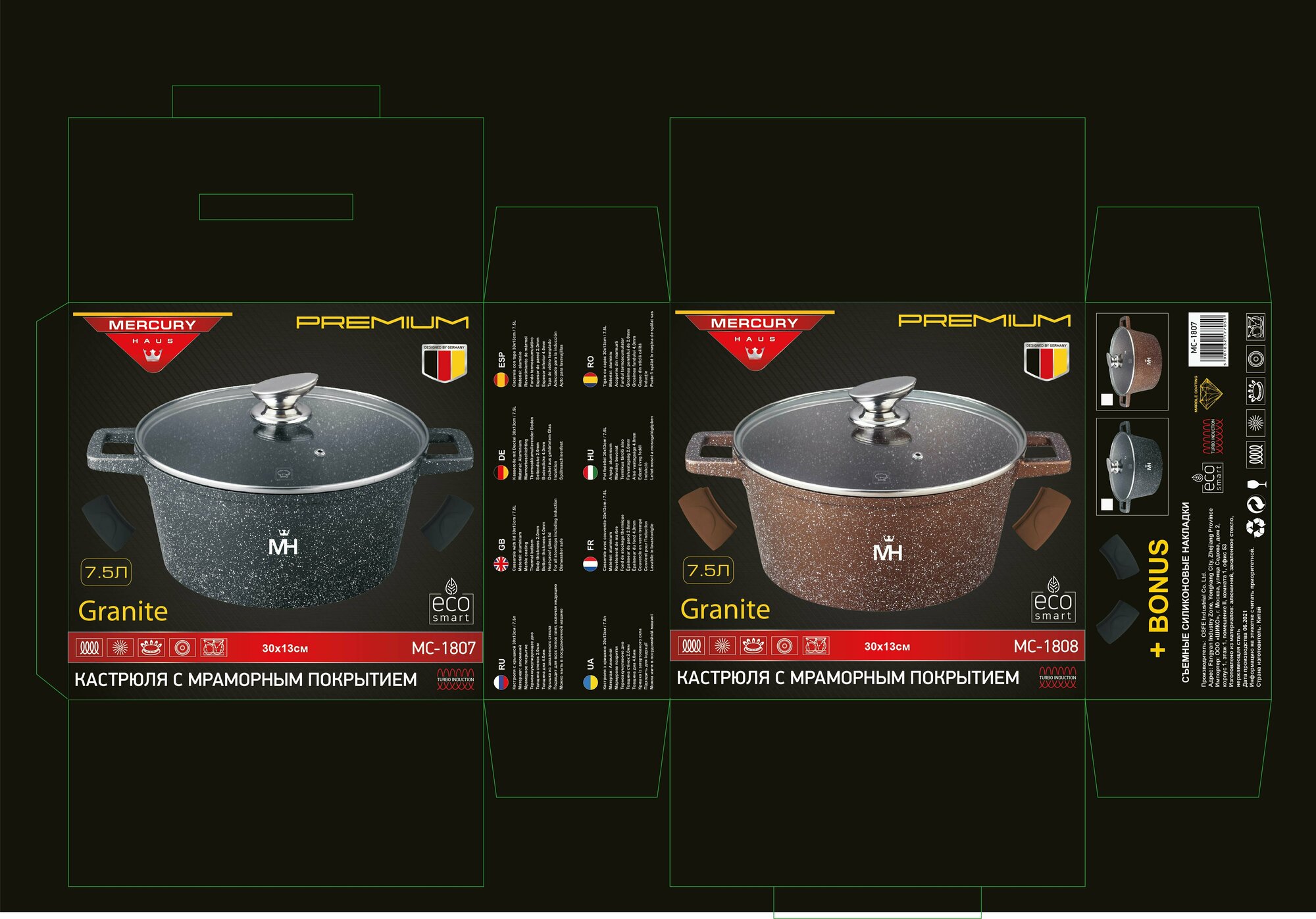 Кастрюля с крышкой MC - 1807 Granite (6) 7,5 л 30*13 см информация: