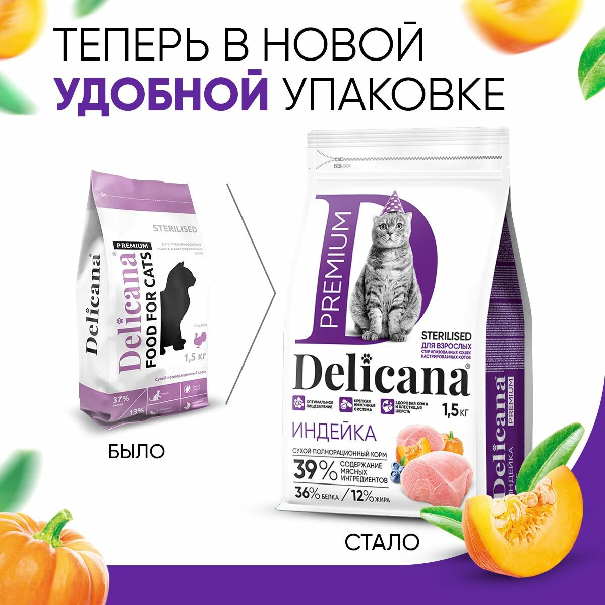 Отзывы на Delicana Сухой корм для стерилизованных кошек и кастрированных котов с индейкой 1,5кг