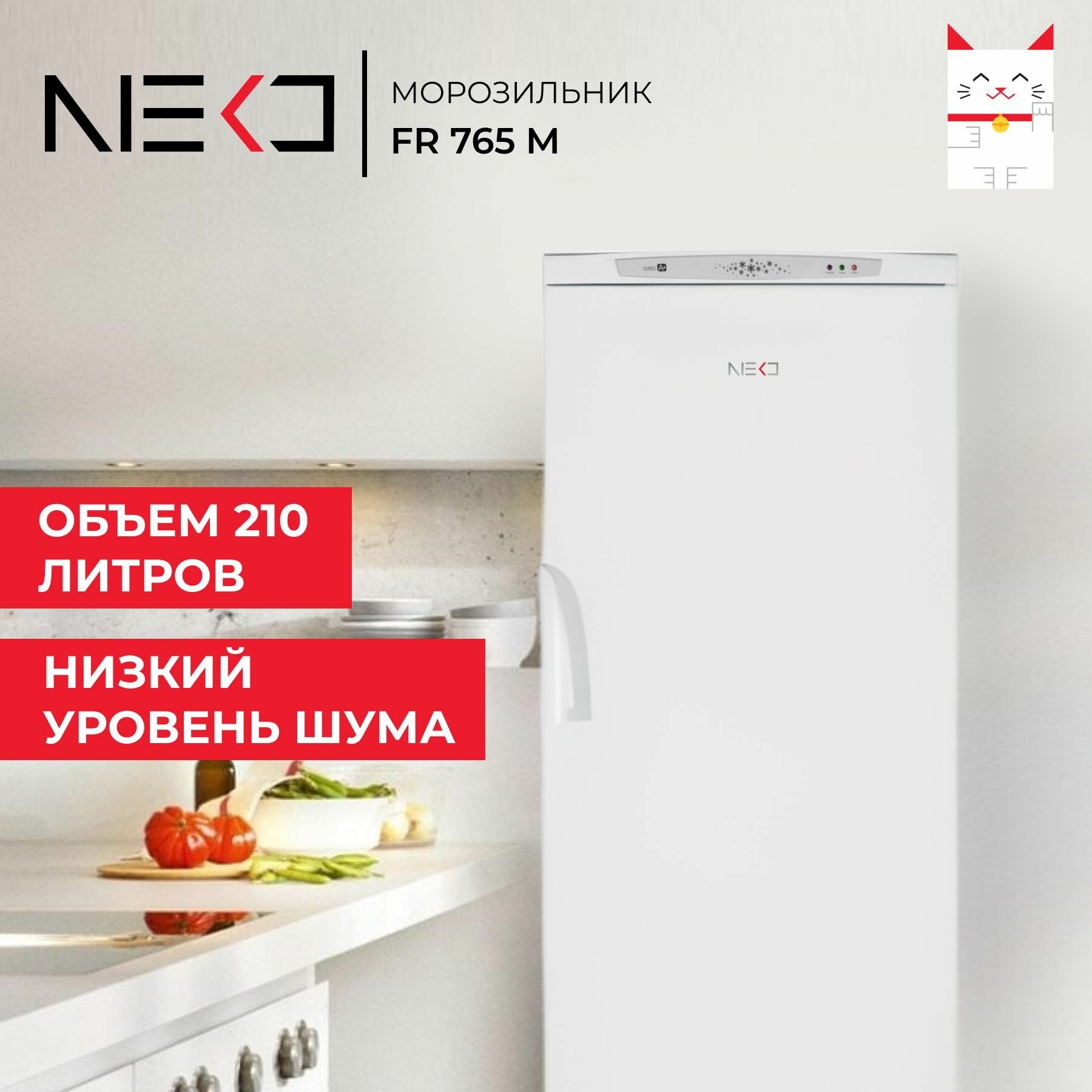 Морозильная камера NEKO FR 765 M, объем 210 л, высота 144 см, с ящиками, белый информация: