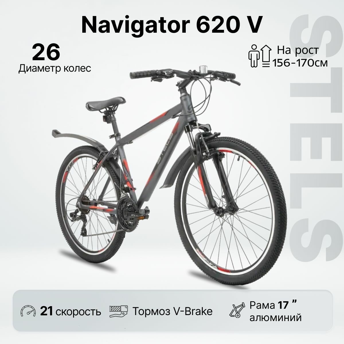 Велосипед горный STELS 26" Navigator 620 V 17" ,матовый серый информация: