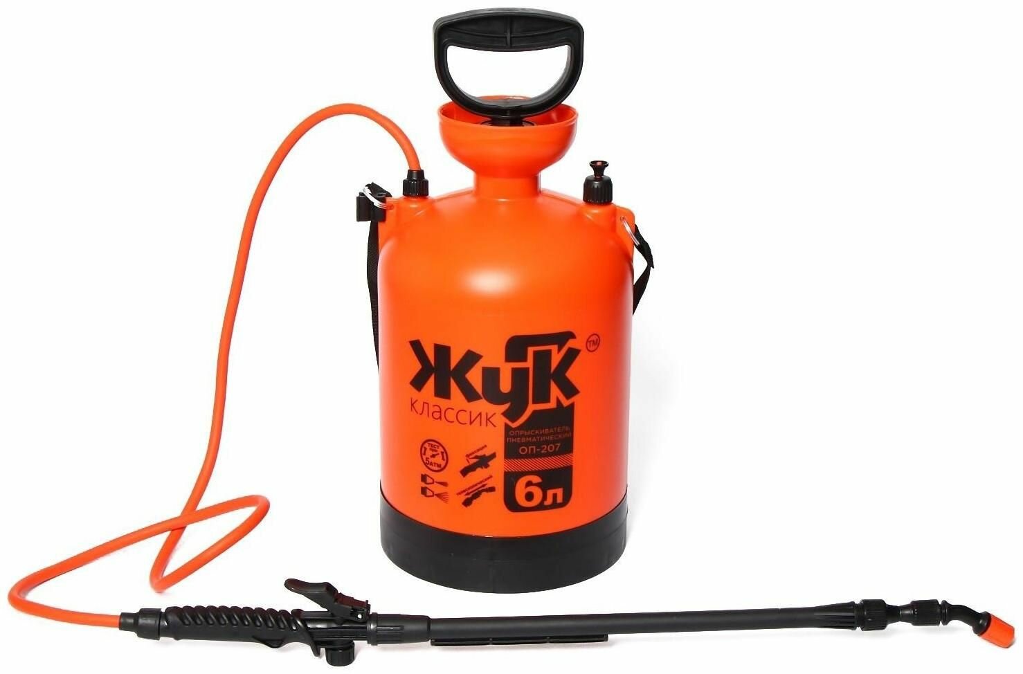 Опрыскиватель помповый ОП-209, 6 л, термоусадка, пластиковый брандспойт 208, Жук информация: