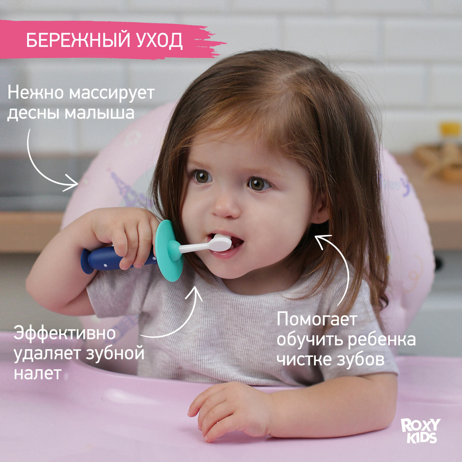 Детские зубные щетки Roxy-Kids Penguin, с ограничителем, для малышей, голубой и желтый, 2 шт. 653 ₽