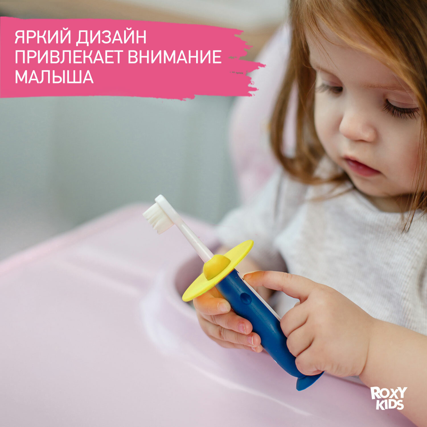 Детская зубная щетка "Пингвин"от ROXY KIDS, монопучковая, ультрамягкая, на присоске, 2шт, цвет голубой +желтый