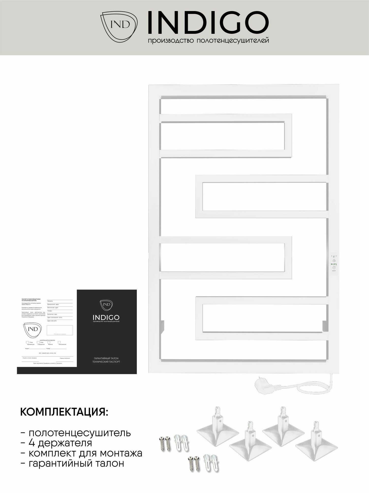Полотенцесушитель электрический INDIGO Flavio 80/50 с таймером белый информация: