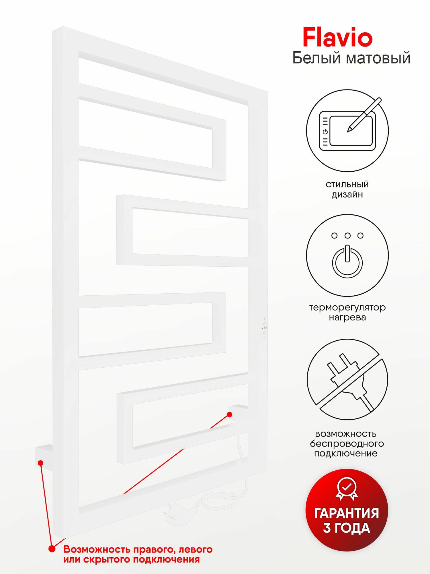 Полотенцесушитель электрический IND (INDIGO) Flavio 80/50 белый матовый 15 191 ₽