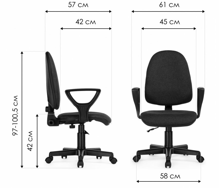 Кресло офисное без подлокотников, 395х420х720(940) мм, черное, ткань