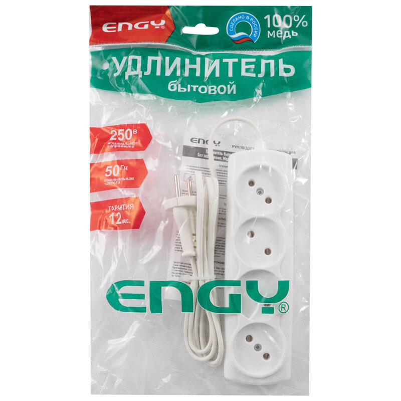 Удлинитель Engy Премиум 4 розетки, 4 розетки, б/з, 10А / 2300 Вт