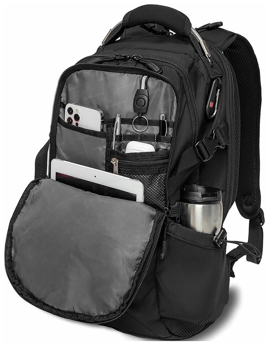 Рюкзак GERMANIUM "S-02" универсальный, с отделением для ноутбука, усиленная ручка, черный, 47х31х16 см информация: