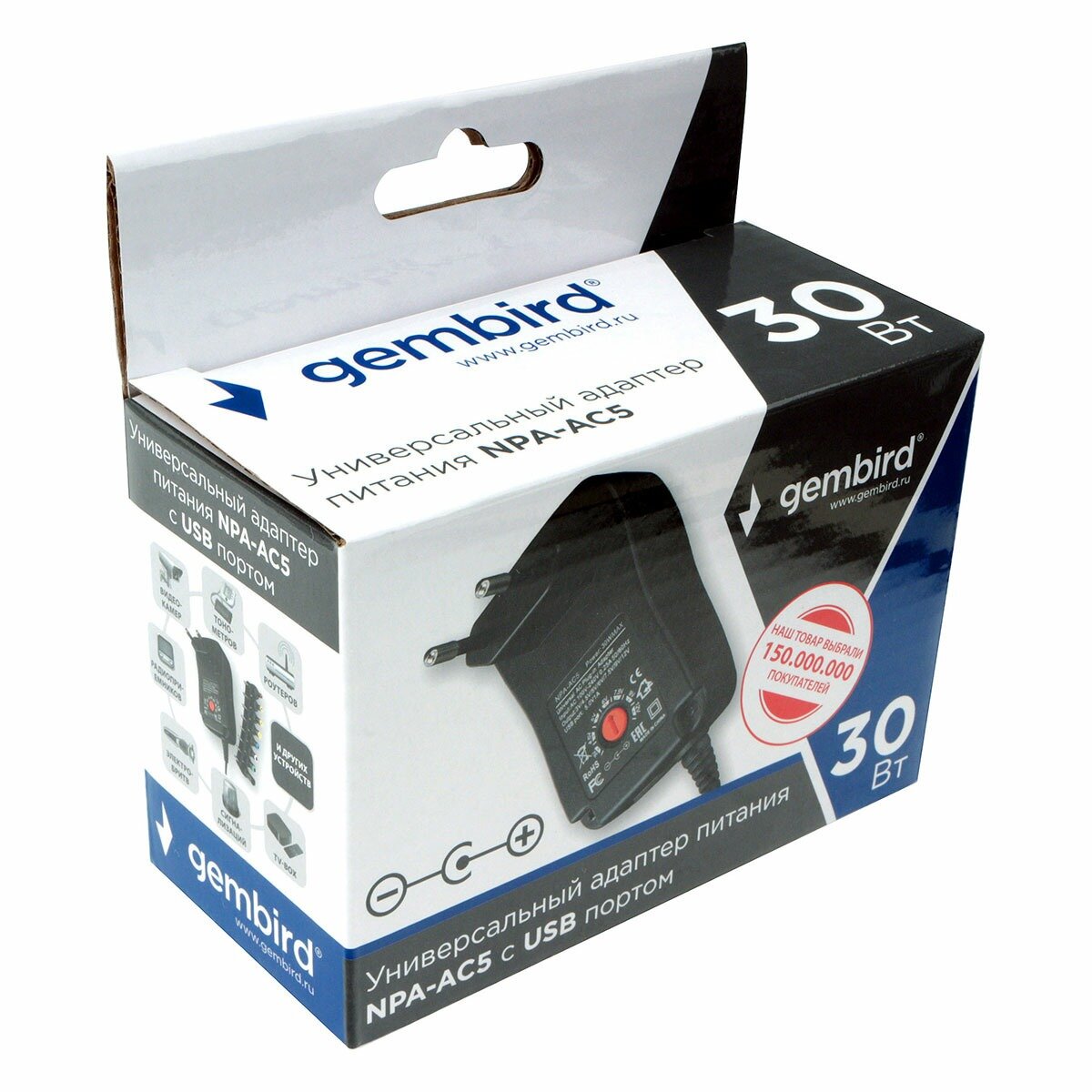 Блок питания Gembird NPA-AC5 (3-12V, 2A, 30Вт, 8 штекеров + USB (Af)) информация: