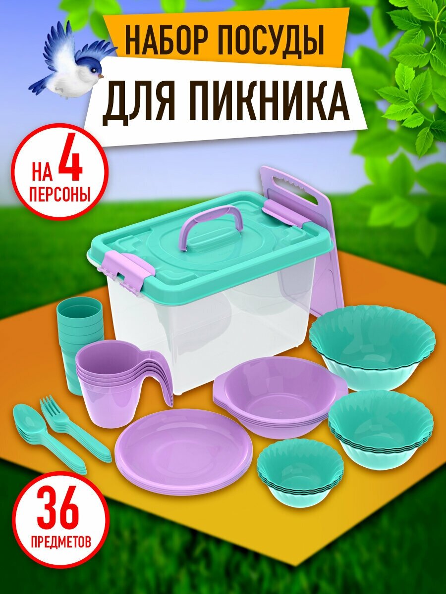 Набор для пикника, посуда для кемпинга №5 «Весёлая компания» (4 персоны, 36 предметов) / АП 181 информация: