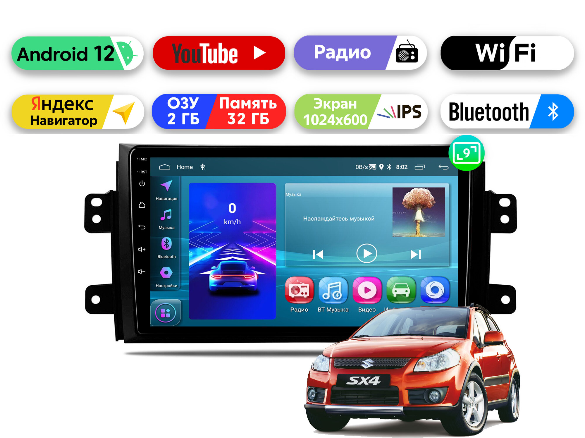 Автомагнитола для Suzuki SX4 (2006-2013), Android 12, 2/32 Gb, Wi-Fi, Bluetooth, Hands Free, разделение экрана, поддержка кнопок на руле информация: