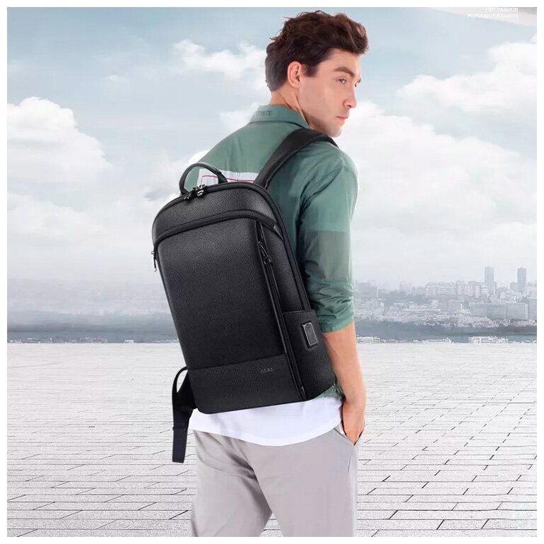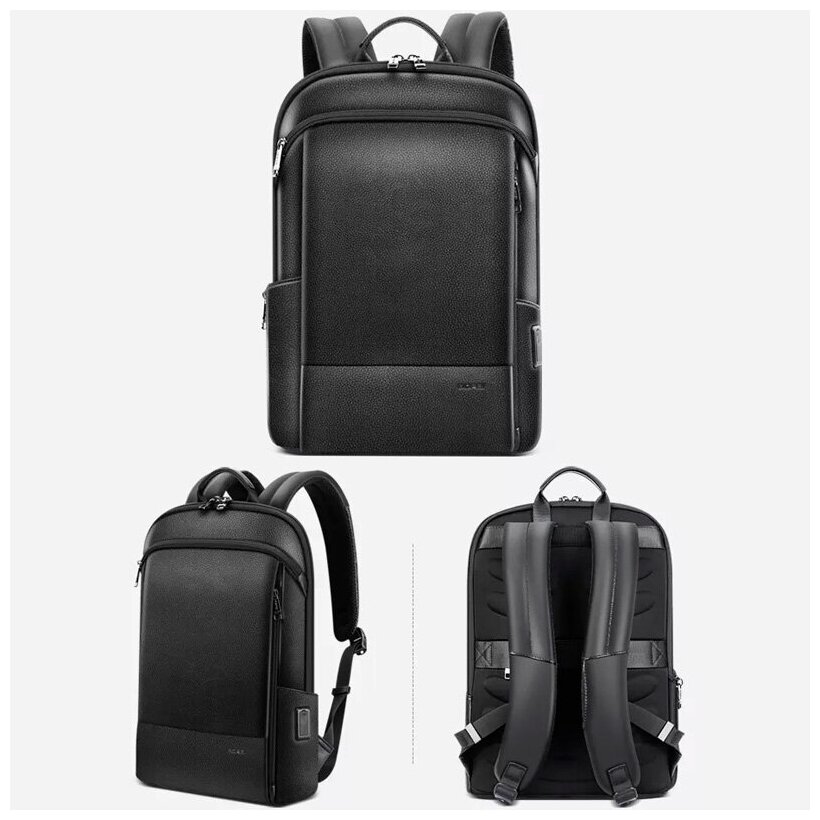 Рюкзак из натуральной кожи городской Bopai универсальный 15л, для ноутбука 15", с USB портом, влагостойкий, черный информация: