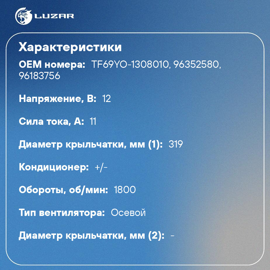 Вентилятор охлаждения\CHEVROLET\LANOS/ арт. LFC0580/ бренд LUZAR